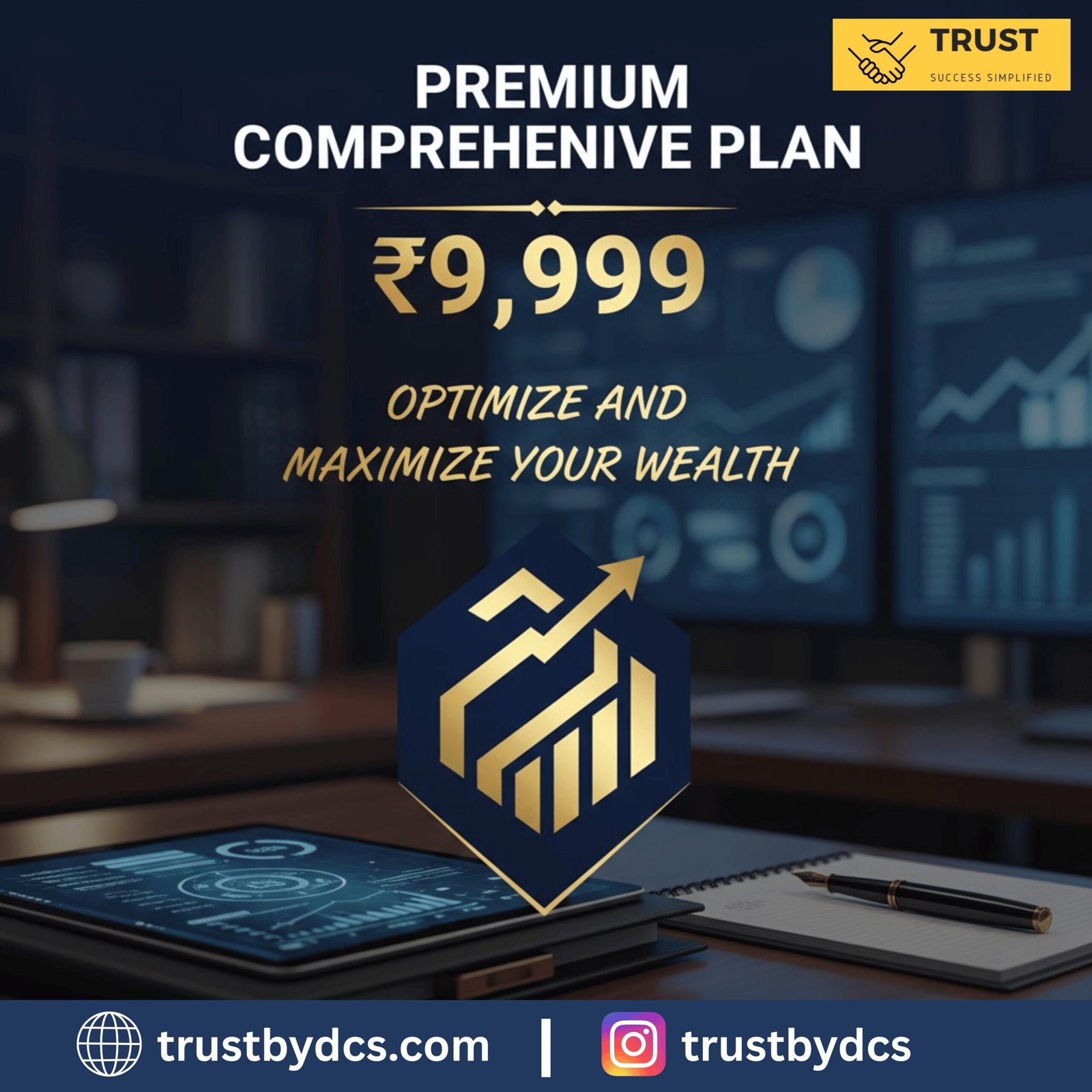 Premium Comprehensive Plan – ₹9,999 Delivery Timeline: 15–20 days Service Brief: The Premium Comprehensive Plan is an advanced financial management service designed for individuals seeking a complete, high-level approach to wealth optimization. It delivers a personalized, data-driven financial strategy that aligns with long-term goals and evolving market conditions. Key Deliverables: 1.Complete Financial Overhaul: In-depth assessment and restructuring of existing financial systems for maximum efficiency and growth. 2.Personalized Strategies: Tailored investment, savings, and tax plans based on individual objectives and risk profiles. 3.Quarterly Reviews: Regular performance evaluations and strategy adjustments to ensure consistent progress. 4.Premium Support: Priority access to expert financial…